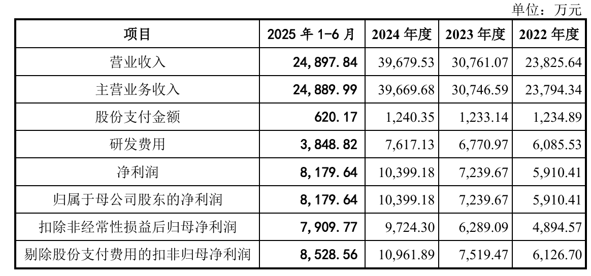 业绩方面,2022年至2024年及2025年上半年(下称“报告期”),沁恒微营收分别为2.38亿元、3.08亿元、3.97亿元、2.49亿元;归母净利润分别为5910万元、7240万元、1.04亿元、8180万元;扣非净利分别为4895万元、6289万元、9724万元、7910万元。