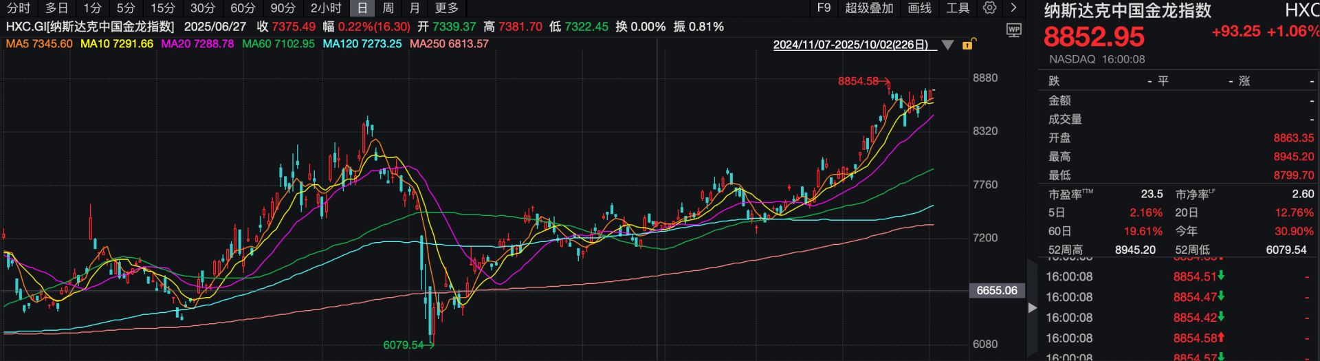 其他方面,昨晚纳斯达克中国金龙指数收涨1.06%,热门中概股多数上涨,世纪互联涨超4%,阿里巴巴、蔚来、金山云涨超3%,百度涨超2%,哔哩哔哩、理想汽车涨超1%;名创优品跌超3%。