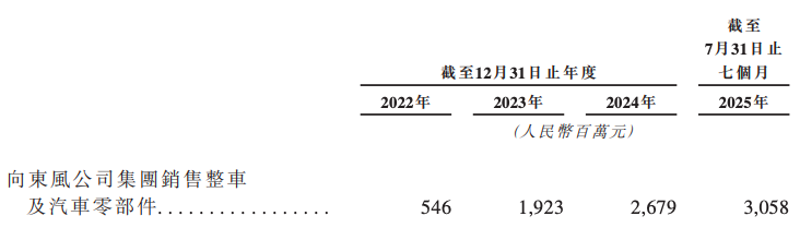据招股书,报告期内,岚图汽车向东风公司集团销售整车及零部件有关的交易金额分别为5.46亿元、19.23亿元、26.79亿元、30.58亿元。汽车金融合作框架协议中,2025年前7个月,岚图汽车为客户承担贴息而向东风公司集团支付汽车贴息达2.89亿元。