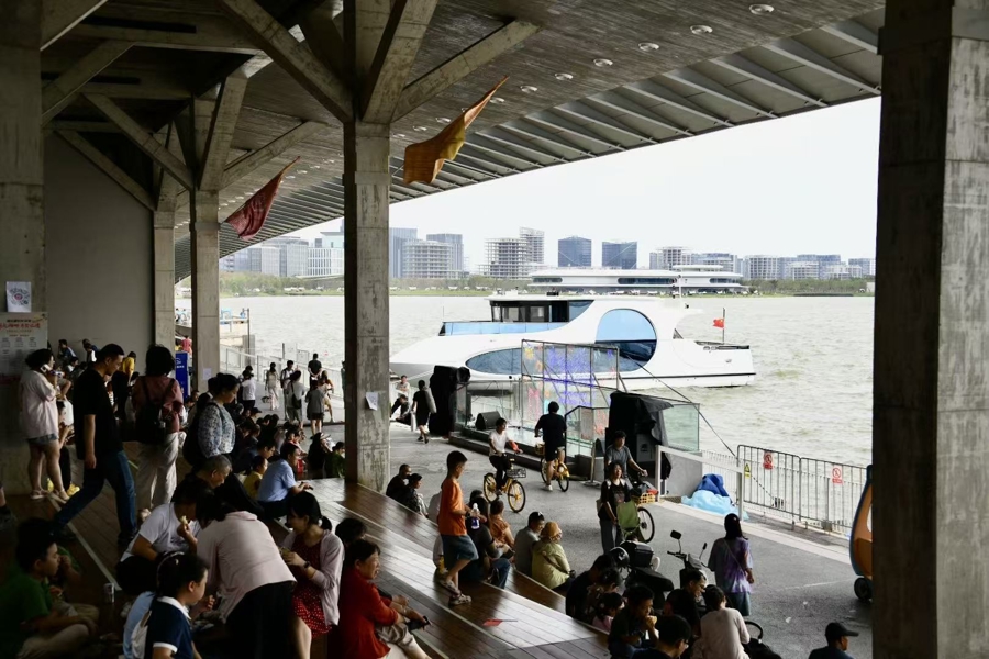 滴水湖码头人头攒动。(均本报记者邢千里摄)
