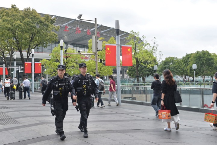国庆长假,上海公安民警坚守岗位,全力护航市民群众假期安全出游。