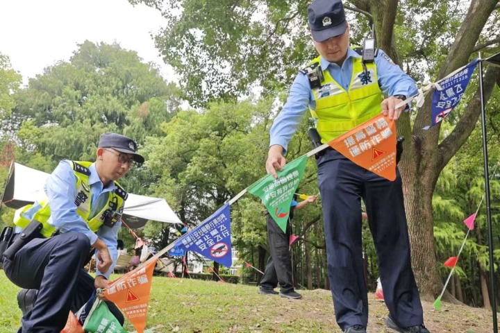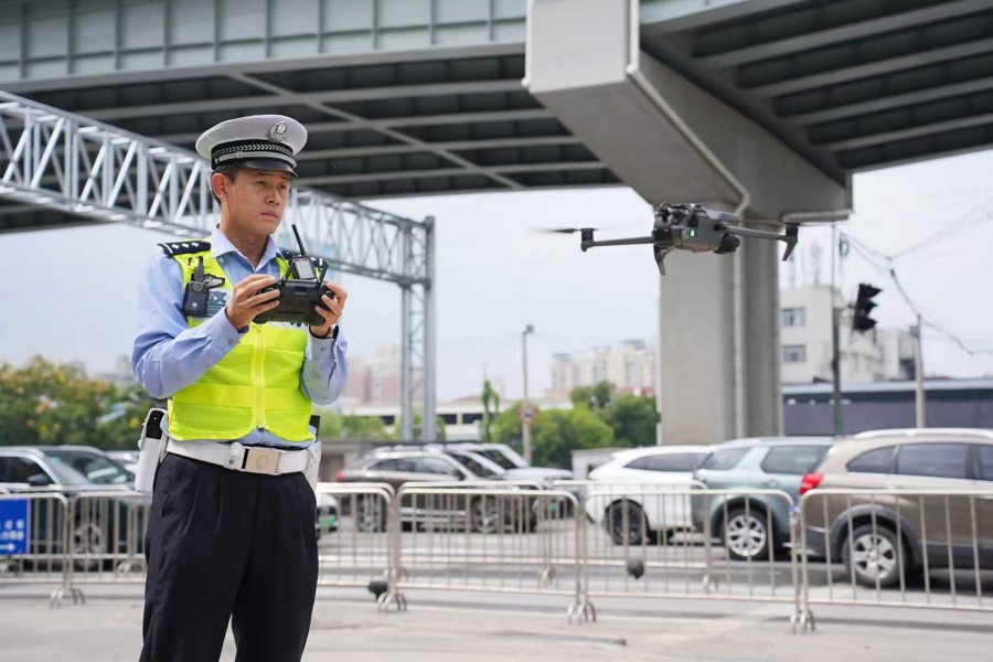 “警用无人机提供的信息让我们对道路情况一目了然,指挥调度更加精准。”正在现场指挥的杨浦交管支队机动大队副大队长倪嘉辉说。与空中“天眼”遥相呼应的,是一张铺陈于地面、由属地杨浦公安分局殷行派出所、特警支队等增援警力与园区安保、平安志愿者力量共同编织的“地网”。由他们组成的平安游园巡逻队穿梭于林荫下、草坪间与热门景点旁,让安全感触手可及。