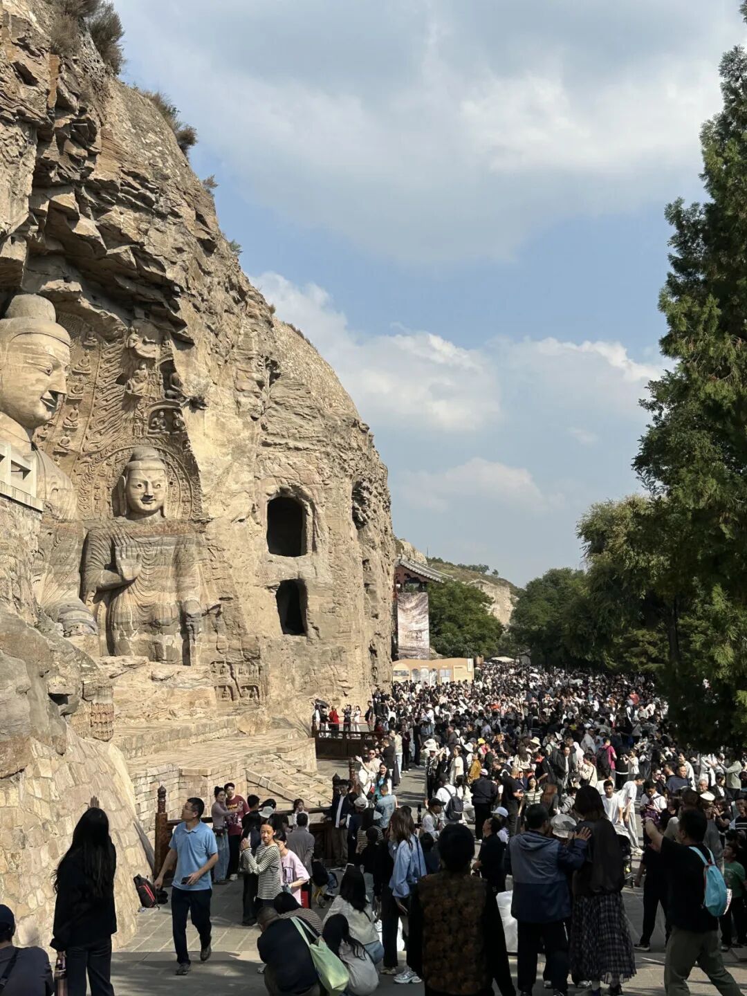 云冈石窟景区迎来大量游客,刘怡鹤摄