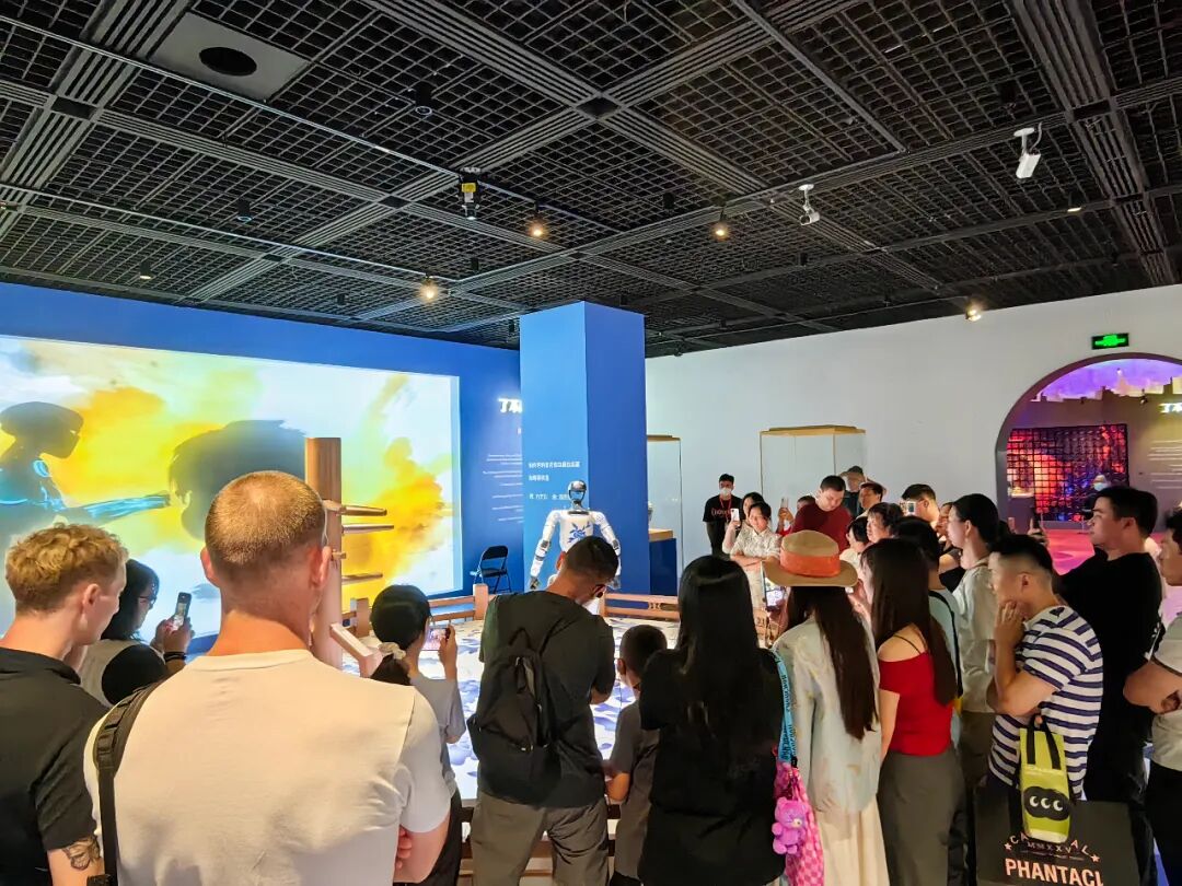 “机器人表演快开始了哦!”一位年轻观众听到工作人员提示后,随即抓住其孩子的手,加快了前往艺术秀“青花武馆”单元的脚步。