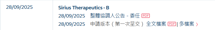 港交所官网信息显示,靖因药业(Sirius Therapeutics)9月28日递交招股书,高盛、海通国际、汇丰为联席保荐人。靖因药业于2021年由OrbiMed Entities及 Creacion Ventures联合创立,是一家创新生物技术公司,聚焦新一代核酸创新疗法在心血管疾病领域的开发。