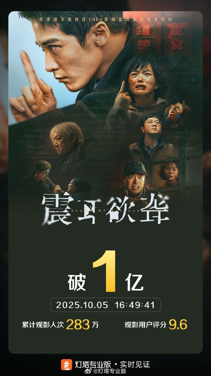 据灯塔专业版实时数据,截至10月5日16时49分,影片《震耳欲聋》票房突破1亿元。