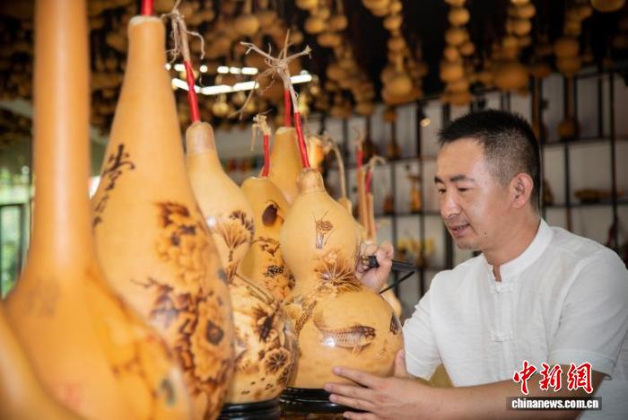 图为葫芦手工烙画。李红卫摄