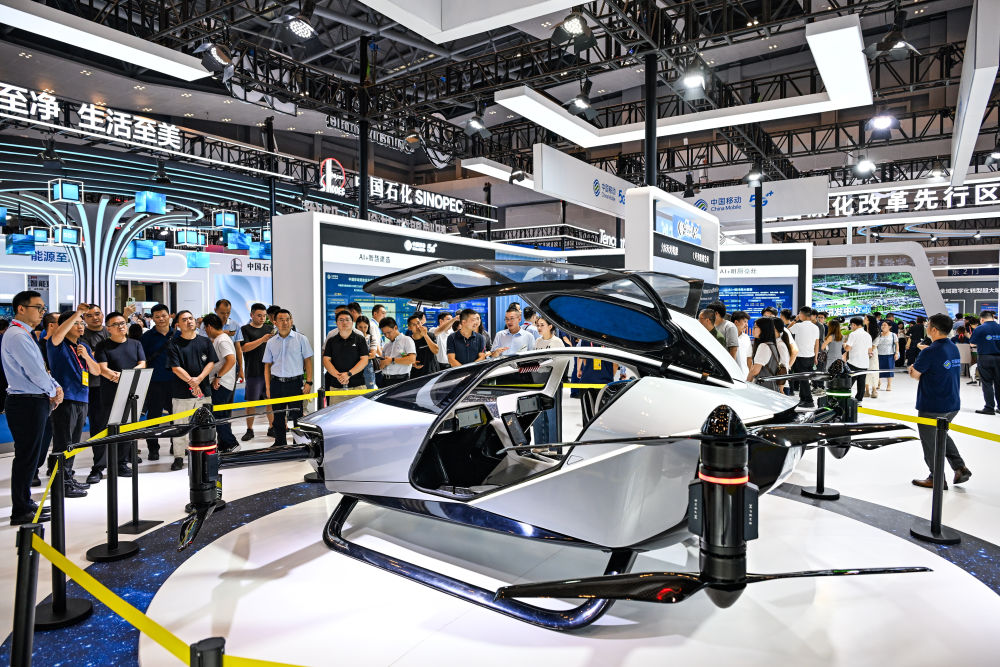 9月5日,观众在智博会上参观电动垂直起降飞行器。新华社记者王全超摄