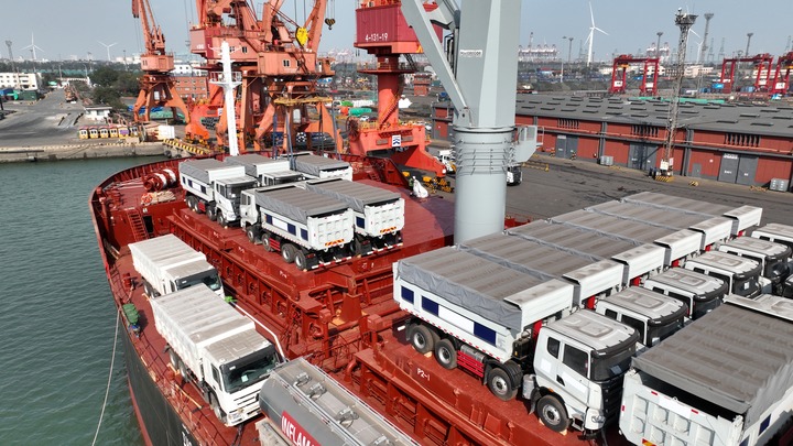10月1日,天津港第四港埠有限公司码头一片忙碌。120辆由三一重工制造的重型自卸车顺利完成装船,奔赴共建“一带一路”国家,将用于中美洲相关国家市政工程项目建设。
