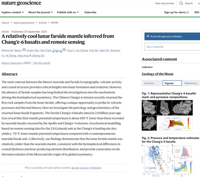 据央视新闻,10月6日,在中华民族传统佳节中秋节之际,国家航天局和国家原子能机构联合发布嫦娥六号月球背面样品研究最新成果。中国科学家首次基于嫦娥六号月球背面样品研究发现,月球背面月幔相比月球正面更“冷”,这一发现进一步深化了人类对月球“二分性”现象的认识,为月球正面与月球背面的月幔温度差异提供了岩石学与地球化学等科学依据,为月球演化和“二分性”特征研究提供了关键科学数据。