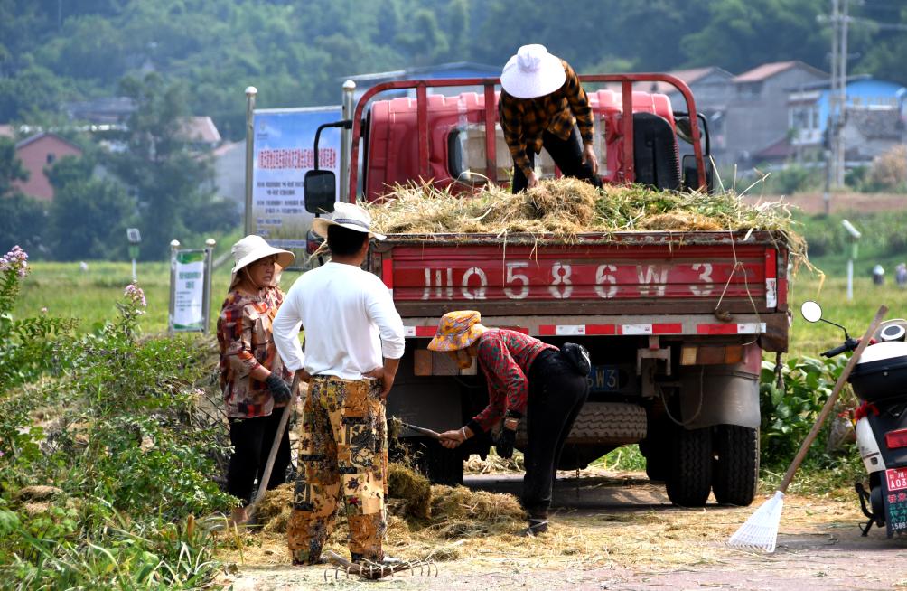 8月21日,在四川省宜宾市南溪区大观镇全福社区,村民正在高标准农田中进行收割作业。新华社记者高健钧摄