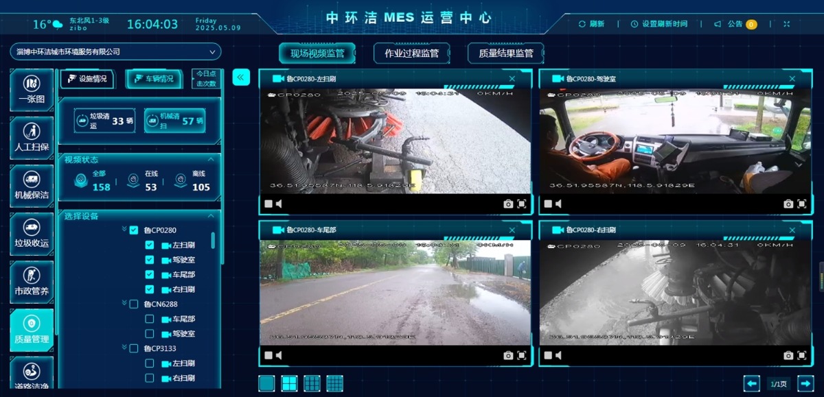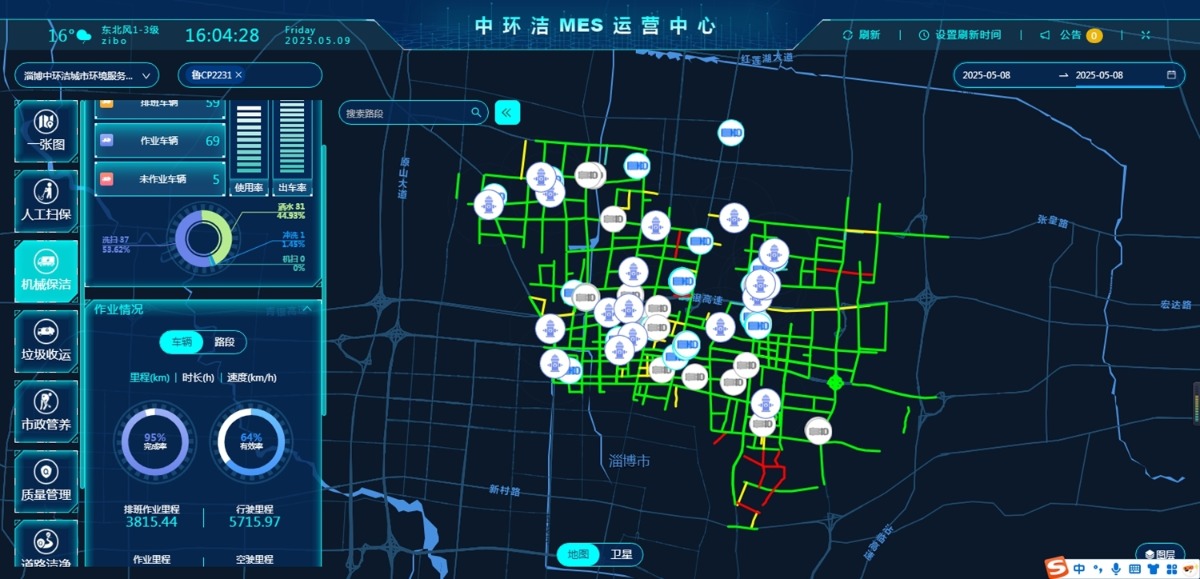 几乎在同一时间,这些数据被实时回传到智慧环卫MES管理平台的调度中心——城市保洁真正的“智慧大脑”。在大屏幕上,我看到我们刚刚经过的路段被标记为异常。
