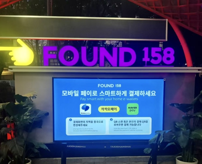 FOUND158与ALIPAY支付宝国际版展开合作,在入口显眼处放置了韩语版支付钱包的操作指示。
