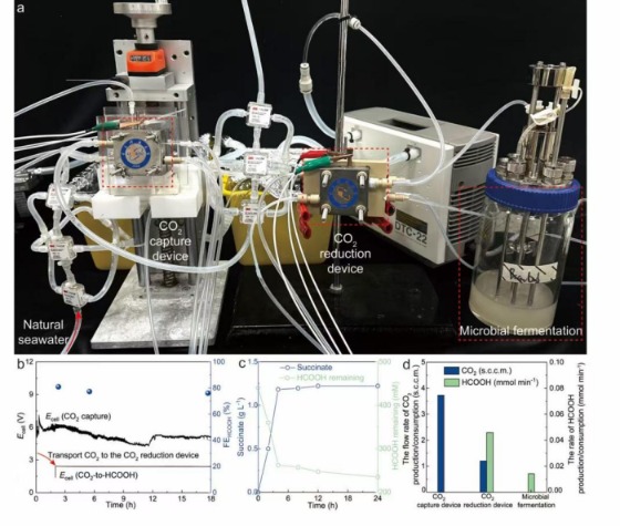 该系统可捕集天然海水中的二氧化碳,并转化为可直接进入生物制造的中间体,再进一步升级为多类高价值化学品与材料。该研究以可降解塑料单体为示范案例,有望为燃料、医药与食品配料等更广谱产品提供生物制造平台。