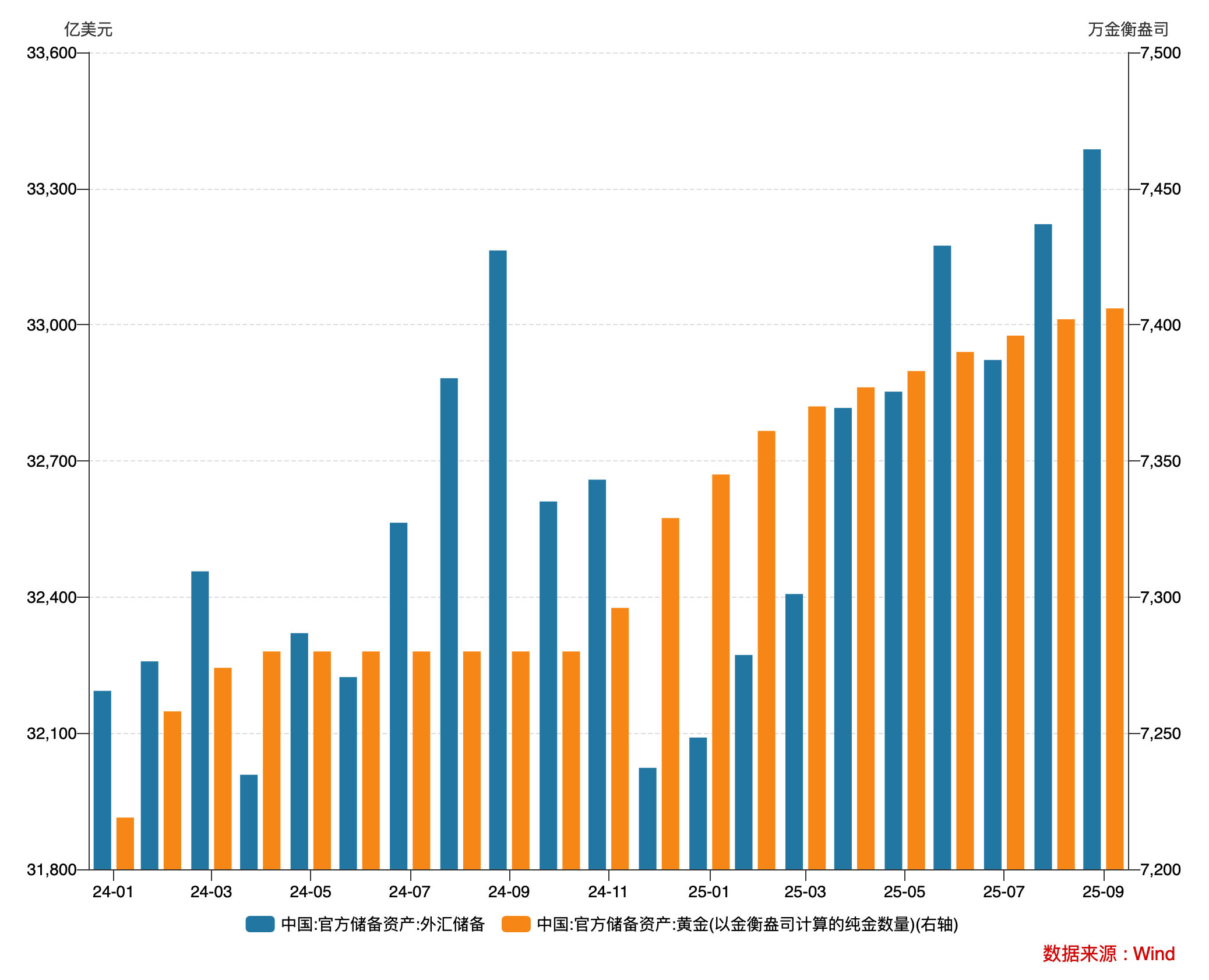 10月7日,国家外汇管理局统计数据显示,截至2025年9月末,我国外汇储备规模为33387亿美元,较8月末上升165亿美元,升幅为0.5%。这是我国外汇储备连续两月站上3.3万亿美元大关,创2015年12月以来最高。