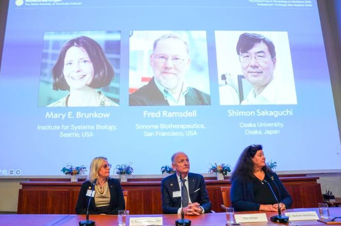 当地时间10月6日,瑞典卡罗琳医学院宣布,将2025年诺贝尔生理学或医学奖授予科学家玛丽·E·布伦科(Mary E. Brunkow)、弗雷德·拉姆斯德尔(Fred Ramsdell)和坂口志文(Shimon Sakaguchi)。