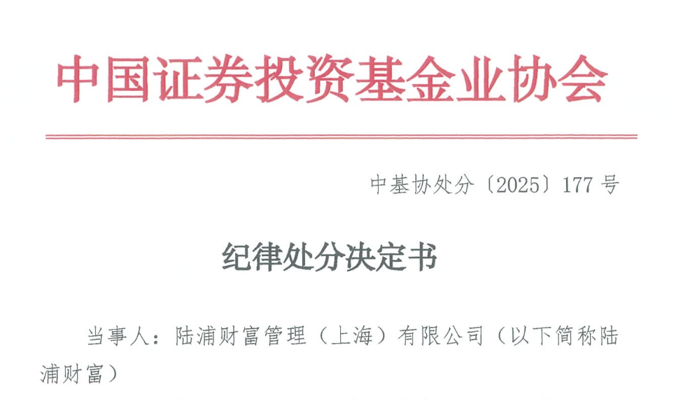 中国证券投资基金业协会(下称中基协)网站近日公布新一批纪律处分决定书。其中,涉及陆浦财富管理(上海)有限公司(下称陆浦财富)的罚单格外引人关注,这家知名私募最终被中基协暂停受理产品备案六个月。