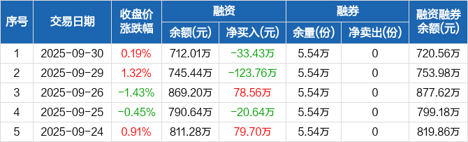 家电ETF:融资净偿还33.43万元,融资余额712.01万元(09-30)