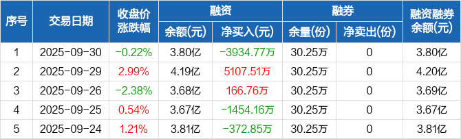 金融科技ETF:融资净偿还3934.77万元,融资余额3.8亿元(09-30)