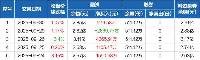 机器人ETF:融资净买入279.58万元,融资余额2.85亿元(09-30)