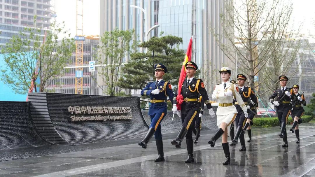 10月9日上午,位于雄安的中国中化总部举行升旗仪式。雄安媒体中心供图