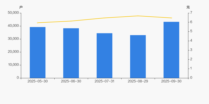 截至2025年9月30日,公司最新流通股本为4.68亿股。户均持有流通股数量由上期的1.42万股下降至1.08万股,户均流通市值7.01万元。