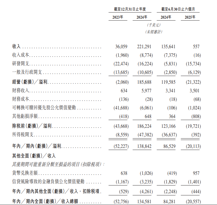 招股书显示,诚益生物仅有阿斯利康一个客户,于2023年、2024年及2025年上半年,来自阿斯利康的收入分别为3610万美元、2.213亿美元及60万美元。来自阿斯利康的BD收入也导致诚益生物的财务表现出现较大波动,公司2023年亏损5222.7万美元,2024年扭亏为盈,达到1.39亿美元,但今年上半年公司亏损为2011.3万美元,主要原因是从阿斯利康收取的很大一部分预付款被确认为2024年的收入。