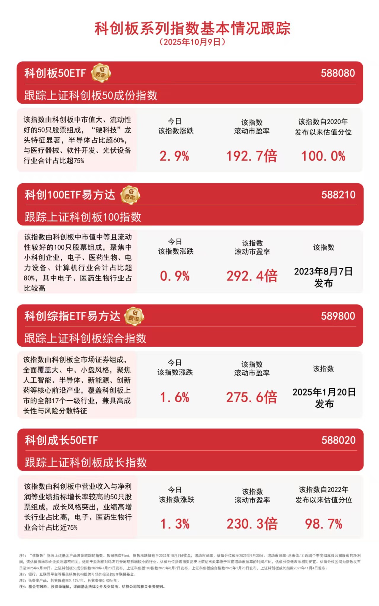 科技板块今日集体发力,盘面上,芯片产业链爆发,软件、核电板块涨幅居前。截至收盘,科创板50指数上涨2.9%、实现三连阳,科创综指上涨1.6%,科创成长指数上涨1.3%,科创100指数上涨0.9%。Wind数据显示,科创板50指数半导体行业权重超65%,在以上指数中最高。截至上一个交易日,科创板50ETF(588080)规模近770亿元,在科创板全部ETF中位居第一。