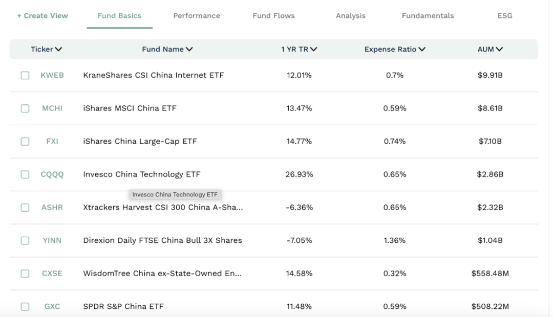 截至目前,在美国上市、规模超过5亿美元的中国股票ETF包括:KWEB,跟踪中证海外中国互联网指数;MCHI,跟踪MSCI中国指数;FXI,跟踪富时中国50指数;CQQQ,跟踪FTSE China Incl A 25% Technology Capped指数;ASHR, 跟踪沪深300指数;YINN为一只三倍杠杆ETF,底层指数为富时中国50指数;CXSE,跟踪Wisdom Tree中国非国企指数;GXC,跟踪标普中国指数。