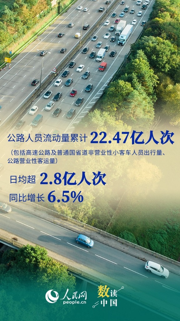 24.32亿人次跨区域流动创同期新高、8.88亿人次出游带动8090.06亿元消费、75.1万人次入境外国人中免签入境占比超七成……今年国庆中秋假期公众出行意愿较强,旅游流、探亲流高位叠加,发达的综合交通运输网络,有效保障了人民群众出行和交通物流高位运行,有力支撑了假日经济的火热。一组数据看交通运力与消费潜力同频共振的生动图景。