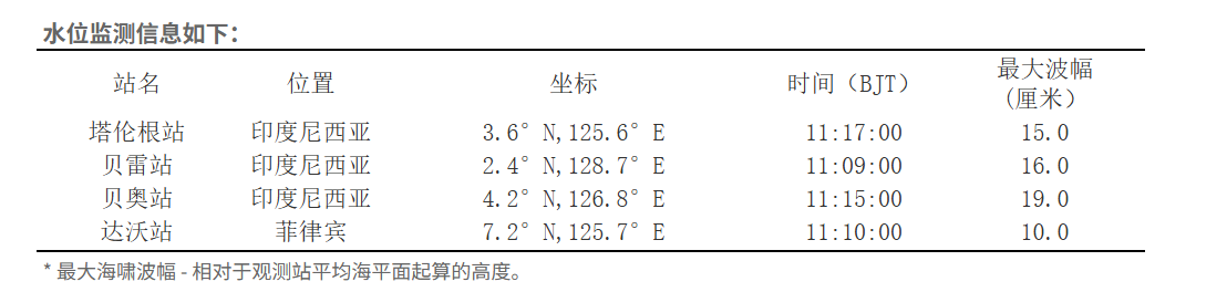 自然资源部海啸预警中心:菲律宾地震已在震源附近引发局地海啸,但不会对我国沿岸造成影响