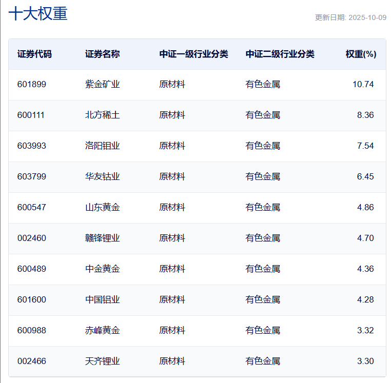 数据来源:wind,截止2025年10月9日,矿业ETF规模为4.11亿,在同类2只产品中排名第一。
