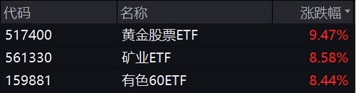 综合看,贵金属和有色金属等板块多因素利好共振,建议投资者关注黄金股票ETF、矿业ETF等。