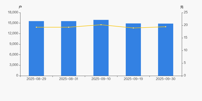 2025年8月29日至今,公司股东户数有所下降,区间跌幅为4.54%。2025年8月29日至2025年9月30日区间股价上涨0.99%。