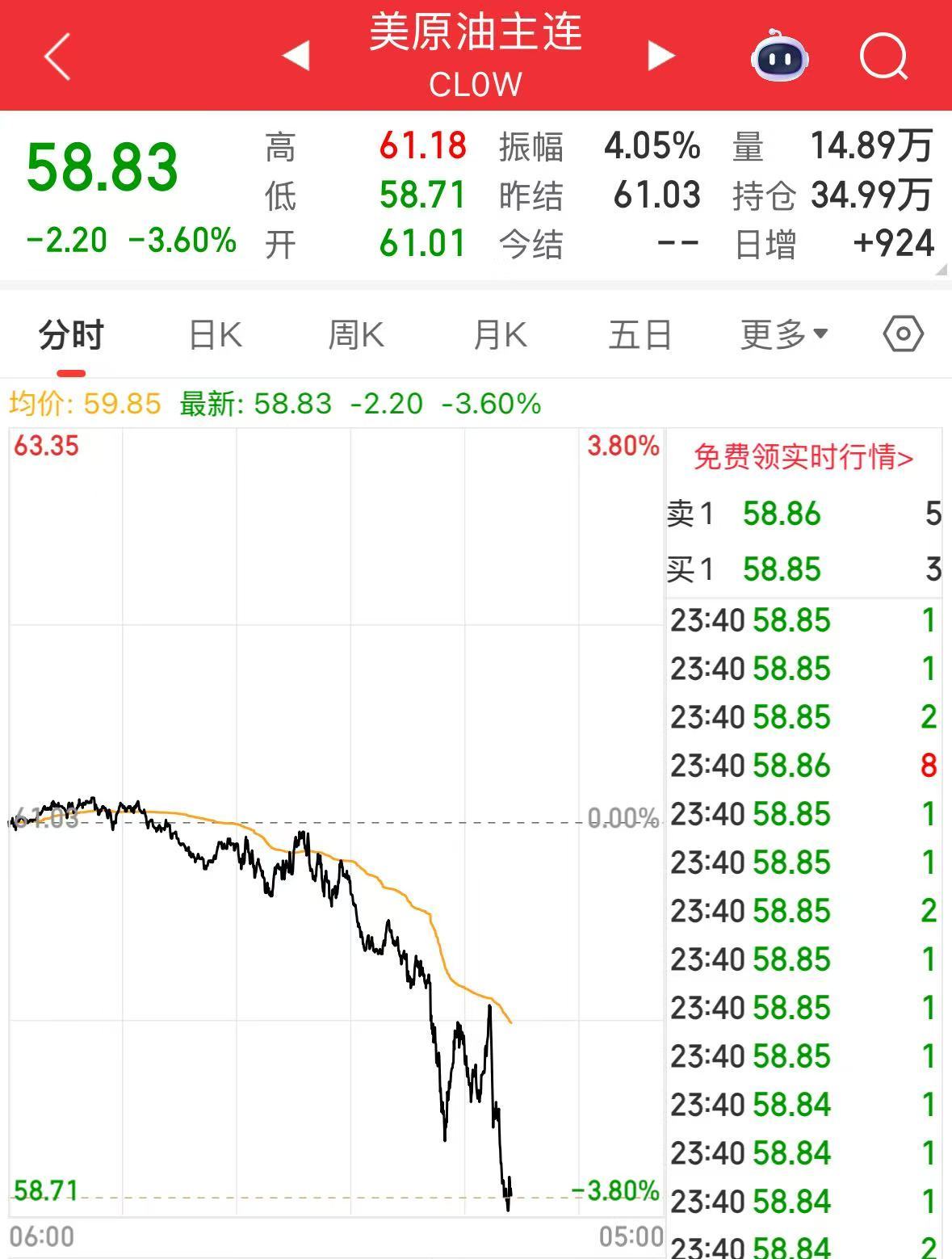 油价延续跌势。截至发稿,布油跌近3%,美油跌超3%。