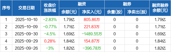 景业智能:融资净买入805.86万元,融资余额1.79亿元(10-10)