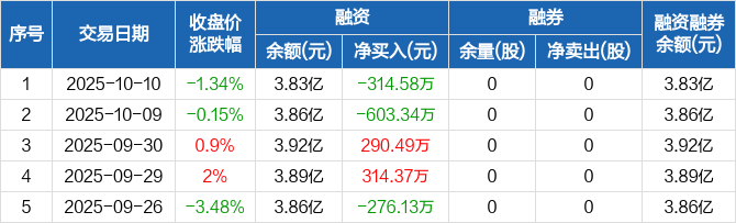 会通股份:融资净偿还314.58万元,融资余额3.83亿元(10-10)