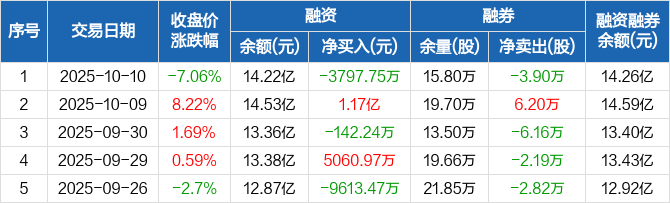 沪硅产业:融资净偿还3797.75万元,融资余额14.22亿元(10-10)