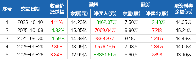 华海清科:融资净偿还8162.07万元,融资余额14.23亿元(10-10)