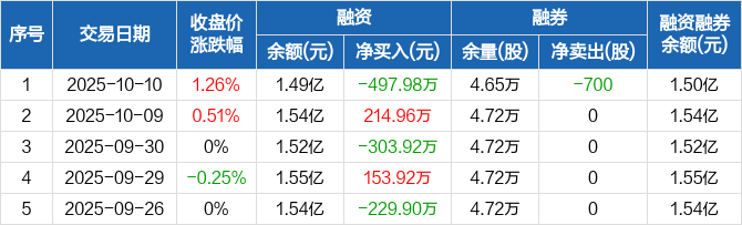 楚天高速:融资净偿还497.98万元,融资余额1.49亿元(10-10)