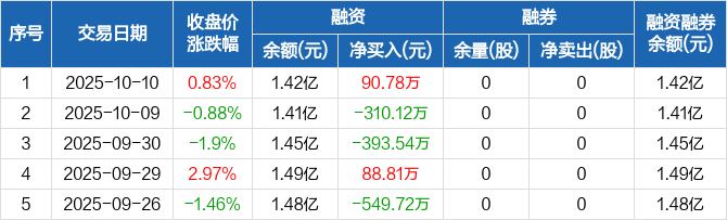 九鼎投资:融资净买入90.78万元,融资余额1.42亿元(10-10)