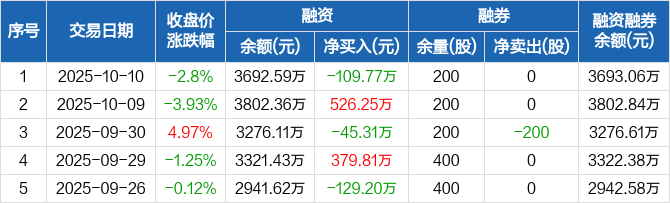 春立医疗:融资净偿还109.77万元,融资余额3692.59万元(10-10)