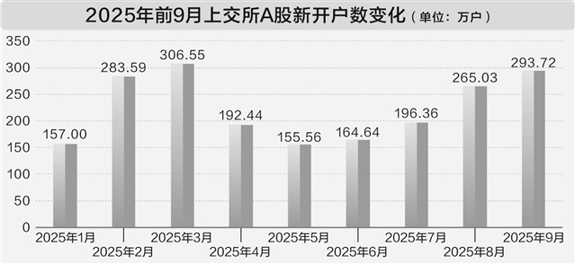 值得注意的是,今年9月上交所293.72万户的A股新开户数为年内月度第二高。在此之前的3月份,上交所A股新开户数超过300万户,为306.55万户。