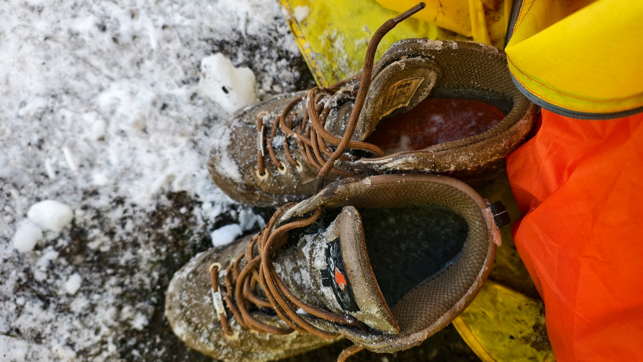 大雪后,立夏的鞋冻住结冰。图/受访者立夏提供