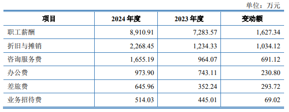 具体来看,职工薪酬较2023年度增加1627.34万元,主要系公司业务规模扩张带来管理人员数量和人均薪酬增加所致;折旧与摊销较2023年度增加1034.12万元,主要是2023年8月公司完成对双英技术的收购,双英技术工业厂房自用部分的折旧计入管理费用。