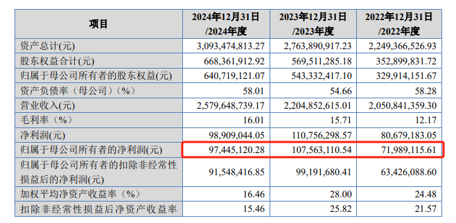 2022年至2024年,双英集团主营业务收入分别为20.18亿元、21.75亿元、25.45亿元;然而,其归母净利润存在一定波动,分别为7198.91万元、1.08亿元、9744.51万元,被监管层要求量化分析去年净利润下滑的原因及合理性。