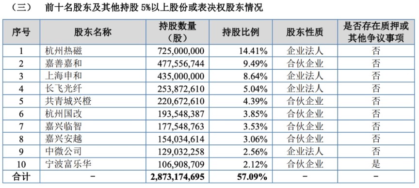 根据公司于6月30日披露的公开转让说明书(申报稿),长飞光纤持股5.045%、中微公司持股2.564%。此外,公司股东宁波富乐中等6家公司为公司及其关联方任职的员工出资的员工持股平台,共计持有公司5.05%的股份,与公司控股股东杭州热磁及上海申和保持一致行动安排。
