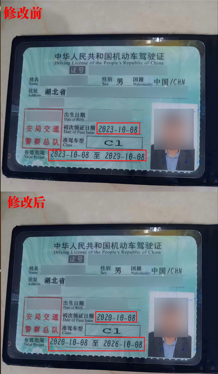 修改前后的驾驶证。图片来源/上海警方
