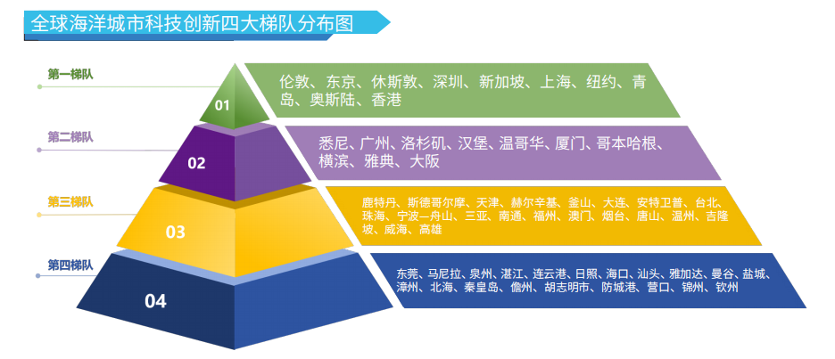 城市层面,目前全球海洋城市的竞争中,传统航运中心稳固居于领先地位,报告评选的第一、第二梯队中,这类城市占主流,且它们也在持续转型升级。