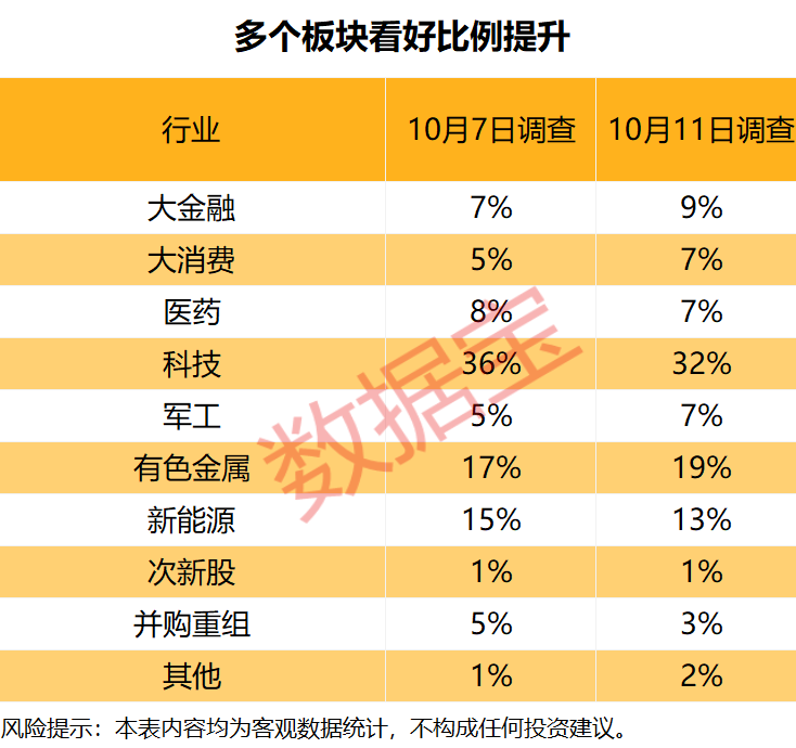 多个板块看好比例提升